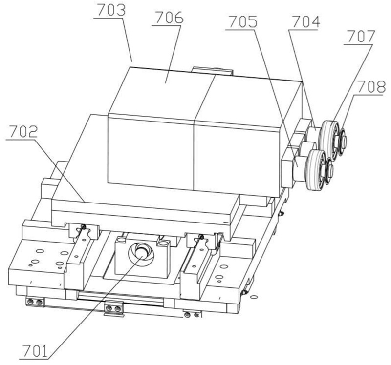 在一些實施方式中,第二移動部包括第二電機、齒輪、齒條、第二線軌、第二滑塊和第二安裝板,第二電機的的輸出端連接齒輪,齒條固定在床身上,齒輪與齒條嚙合,第二線軌與齒條平行設置,第二滑塊套設在第二線軌上,第二電機與第二滑塊固定安裝在第一安裝板上,第二電機驅動第二安裝板在第二線軌上作直線往復運動。