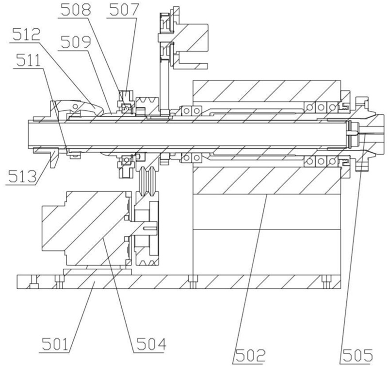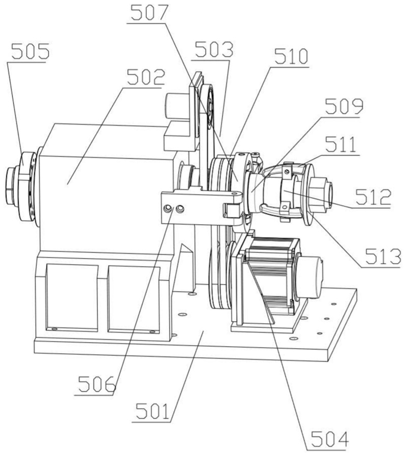 在一些實施方式中,第一夾持部包括第四安裝板、主軸箱、附加夾頭和旋轉驅動件,主軸箱設置在第四安裝板上,主軸箱遠離卡盤的一側設有附加夾頭,旋轉驅動件驅動主軸箱。