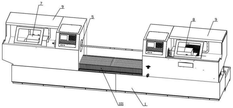 圖1是本實用新型碳化硅管體雙頭打磨車床的結構示意圖;