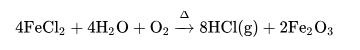 酸洗鋼材工業(yè)發(fā)展了鹽酸再生工藝,如噴霧焙燒爐或流化床鹽酸再生工藝等。這些工藝能讓氯化氫氣體從酸洗液中再生。其中最常見的是高溫水解工藝,其反應(yīng)方程式如下: