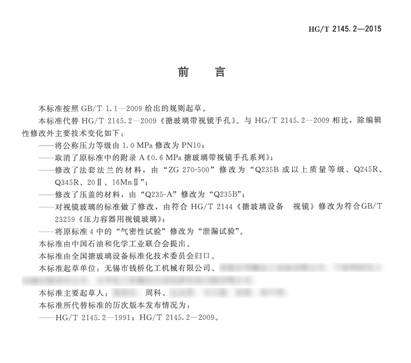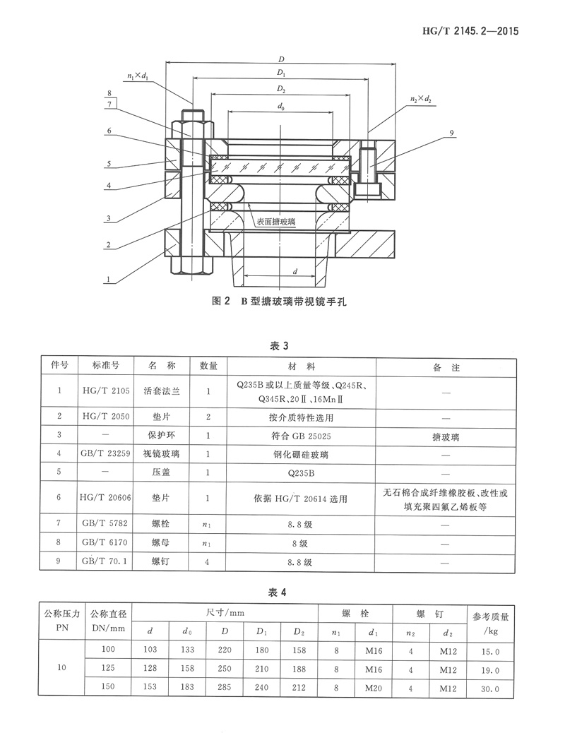 HG/T 2145.2-2015搪玻璃帶視鏡手孔化工行業(yè)標準簡介和下載
