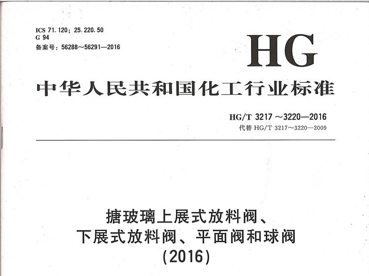 HG/T3217~3220-2016搪玻璃閥門標(biāo)準(zhǔn)
