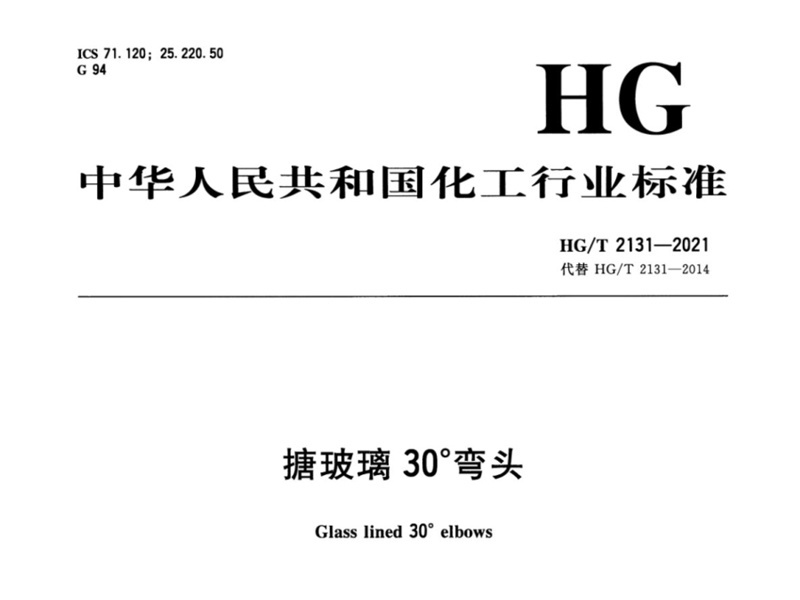 HG/T 2131-2021搪玻璃30°彎頭行業(yè)標(biāo)準(zhǔn)簡介和下載