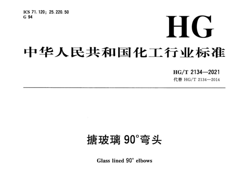 HG/T 2134-2021搪玻璃90°彎頭行業(yè)標(biāo)準(zhǔn)簡介和下載